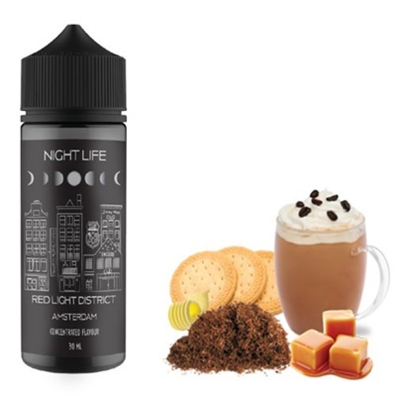 Επάξια θεωρείται ένα από τα καλύτερα καπνικά υγρά, συνδυασμένο άψογα με το ιταλικό ταπεραμέντο του από το πρώτο δευτερόλεπτο. Πλούσια γεύση καφέ καπουτσίνο με λαχταριστά μπισκότα βουτύρου, φτιαγμένο για τους εραστές της απόλαυσης! Με το LIFE RED LIGHT DISTRICT, θα απολαύσετε μια φίνα συνταγή που θα σας συντροφεύει όλη μέρα. Γλυκές και γήινες νότες με πλούσιο άρωμα, ότι καλύτερο για ένα ευχάριστο πρωινό ξύπνημα έπειτα από ένα περιπετειώδες Nightlife!!!