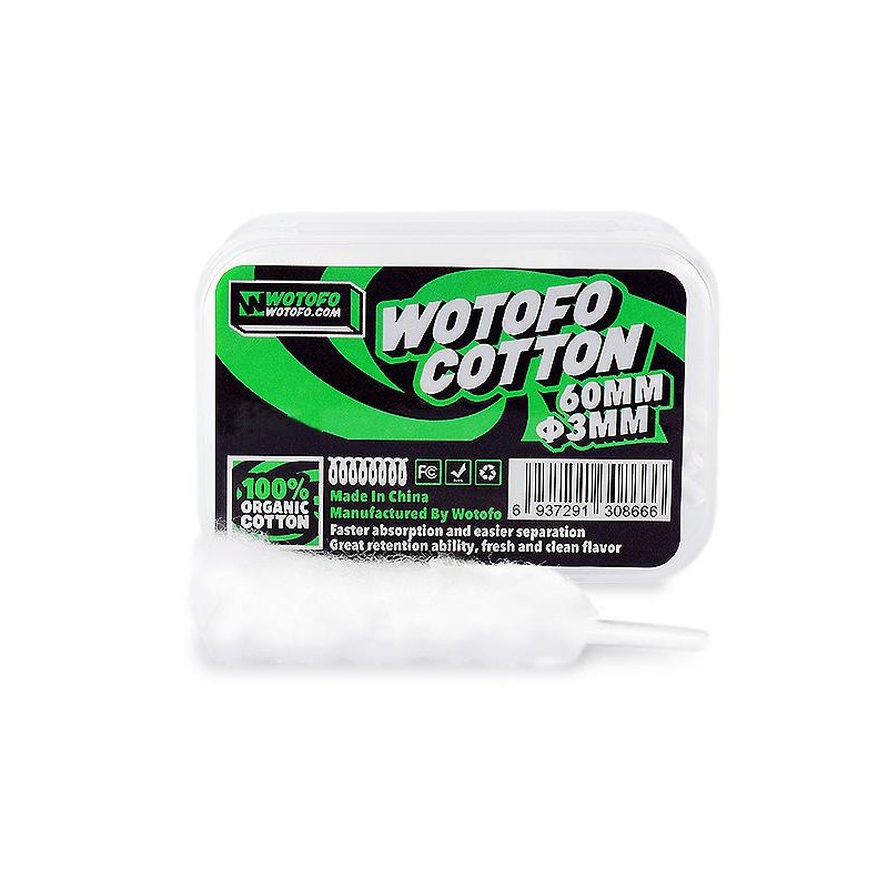 Η Wotofo δημιούργησε αυτό το βαμβάκι εμπνευσμένη από την ανάγκη των χρηστών για γρήγορη τοποθέτηση και αντικατάσταση του βαμβακιού στους επισκευάσιμους ατμοποιητές. Είναι από 100% οργανικό βαμβάκι με μακριές ίνες με άμεση απορροφητικότητα και καλή απόδοση στην γεύση.